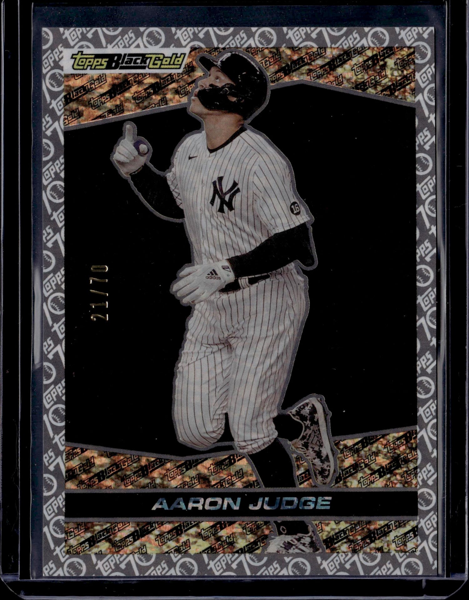 2021 Topps Update #BG-10 Aaron Judge Topps Black Gold Platinum Anniversary #/70 is backordered and will ship as soon as it is back in stock.