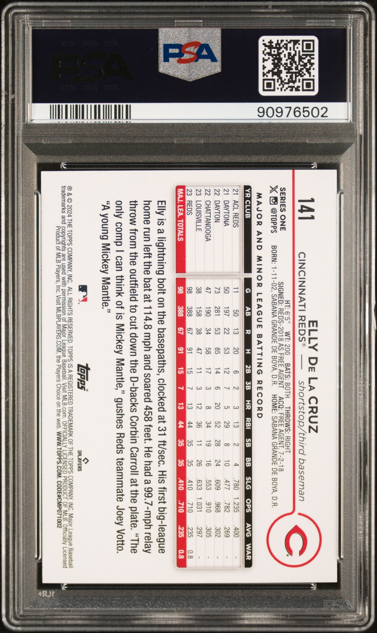 2024 Topps #141 Elly De La Cruz Gold Foil PSA 10 is backordered and will ship as soon as it is back in stock.
