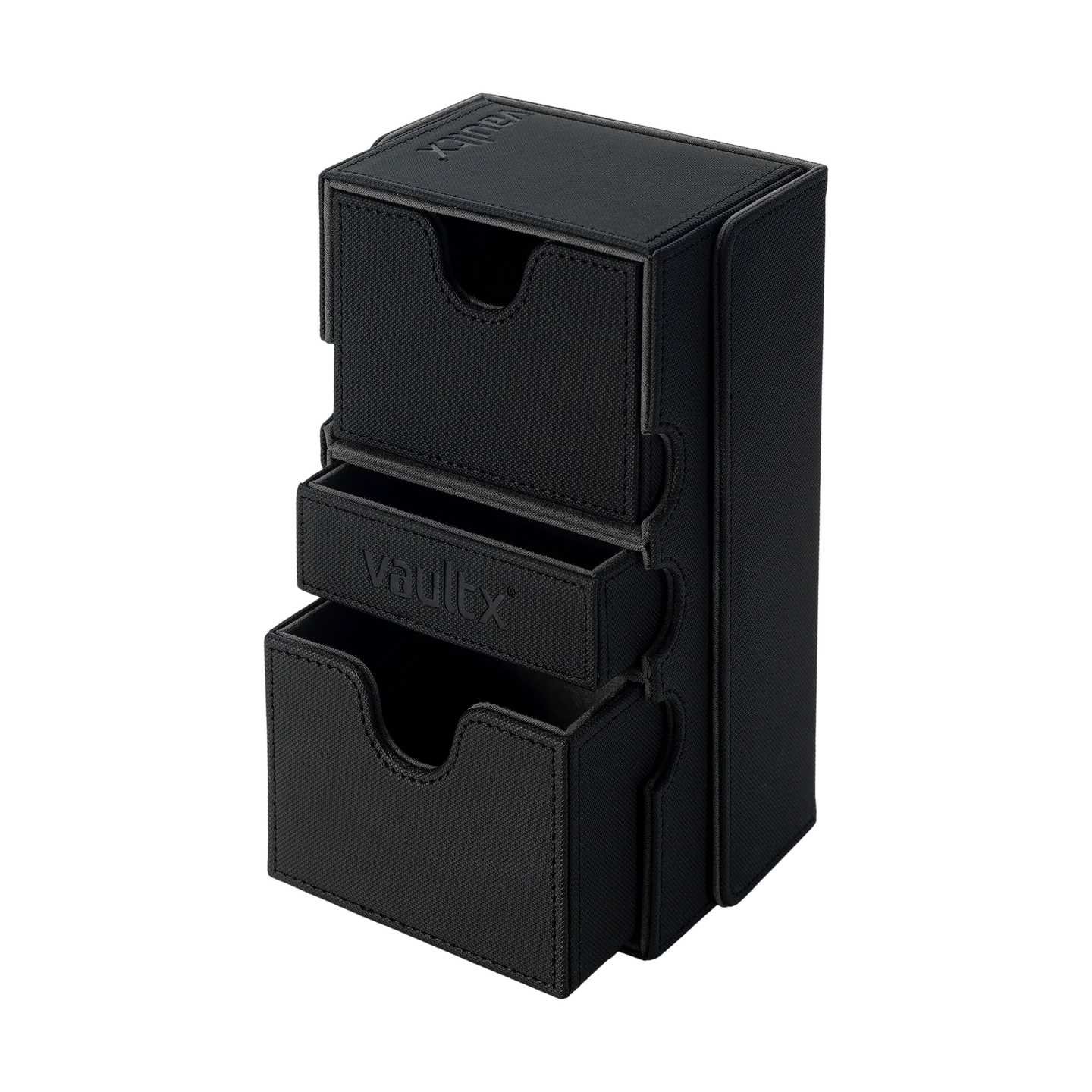 Premum quality game box made with a durable, water-resistant Exo-Tec® exterior paired with a soft, protective microfiber lining. 2x 100+ capacity deck drawers and a versatile accessories tray makes this box the ultimate tournament companion. 2 card dividers included inside.