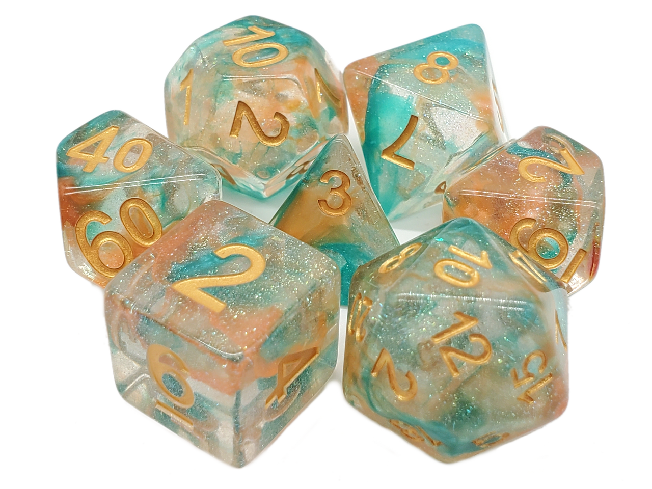 Old School 7 Piece DnD RPG Dice Set: Luminous - Koi Pond