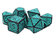 Old School 7 Piece DnD RPG Dice Set: Rune Dice - Magical Runes - Teal