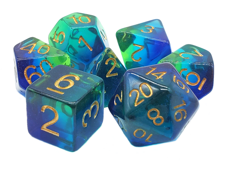 Old School 7 Piece DnD RPG Dice Set: Gradients - Night Time Swim