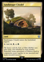 Sandsteppe Citadel enters the battlefield tapped. {T}: Add {W}, {B}, or {G}.