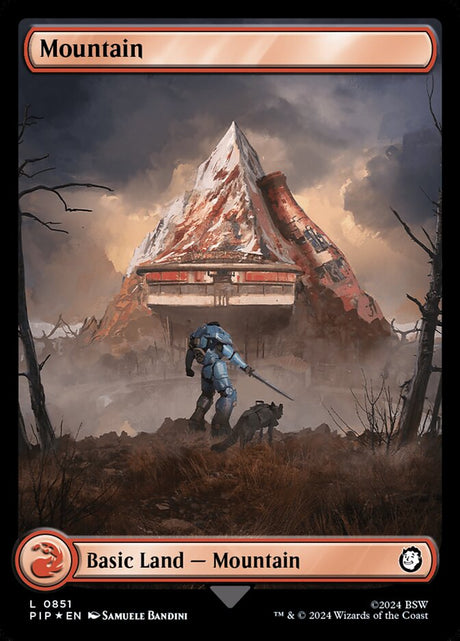 Mountain (851) - [Surge Foil, Full Art] Fallout (PIP)