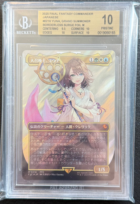 Yuna, Grand Summoner #216 (Borderless) (Surge Foil) - [Graded BGS 10] Commander: FINAL FANTASY (FIC)