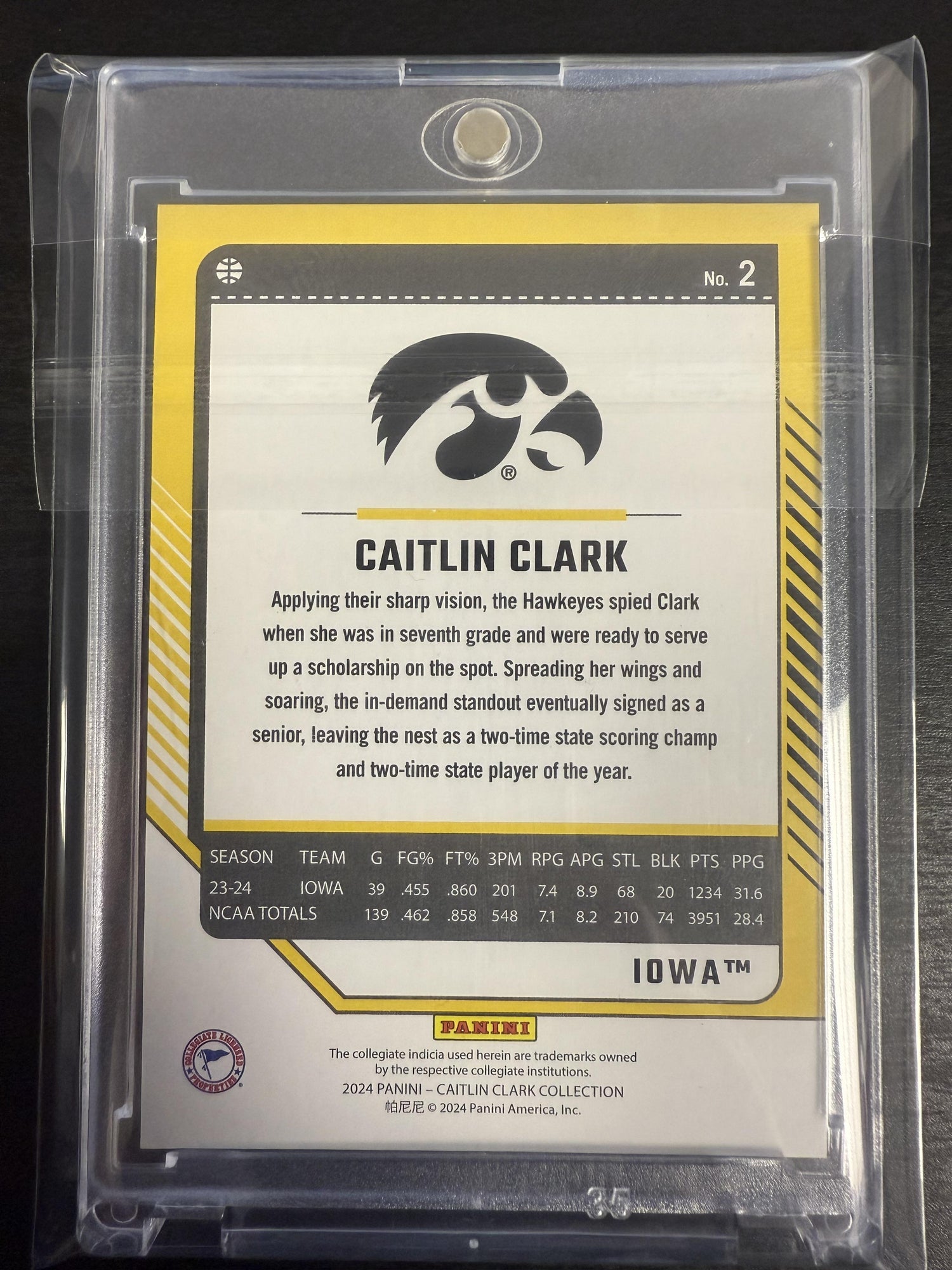 This is a nice example of a 2024 Panini Caitlin Clark Collection #2 Caitlin Clark Pink Other important information about this card:SNIn 2024 Caitlin Clark played for the Iowa Hawkeyes.Please check out our other listings for more great cards.