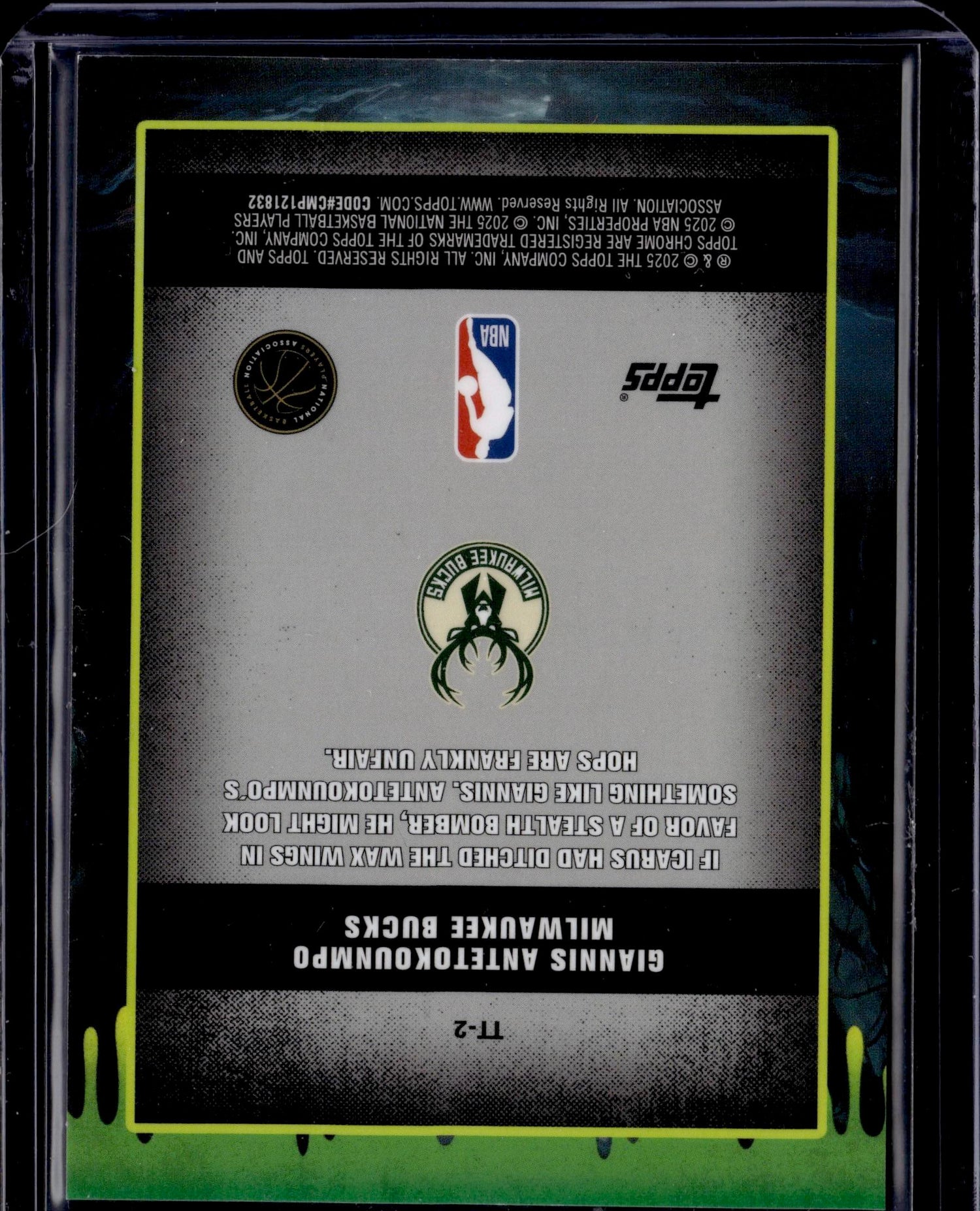 This is a nice example of a 2025-26 Topps Chrome #TT-2 Giannis Antetokounmpo Tall Tales Gold Geometric Refractor Other important information about this card:SNIn 2025 Giannis Antetokounmpo played for the Milwaukee Bucks.Please check out our other listings for more great cards.