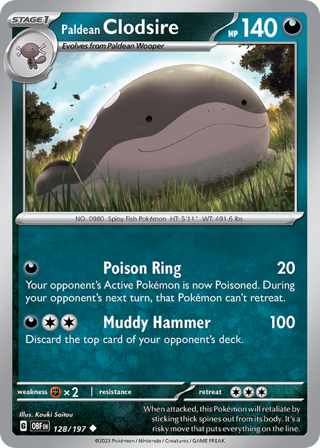 Paldean Clodsire (128/197) - [Reverse Holo] Obsidian Flames (OBF)