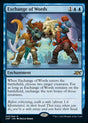 When Exchange of Words enters the battlefield, choose two target creatures. For as long as Exchange of Words remains on the battlefield, exchange the text boxes of those creatures.