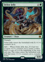 Trample Ochre Jelly enters the battlefield with X +1/+1 counters on it. Split — When Ochre Jelly dies, if it had two or more +1/+1 counters on it, create a token that's a copy of it at the beginning of the next end step. That token enters the battlefield with half that many +1/+1 counters on it, rounded down.